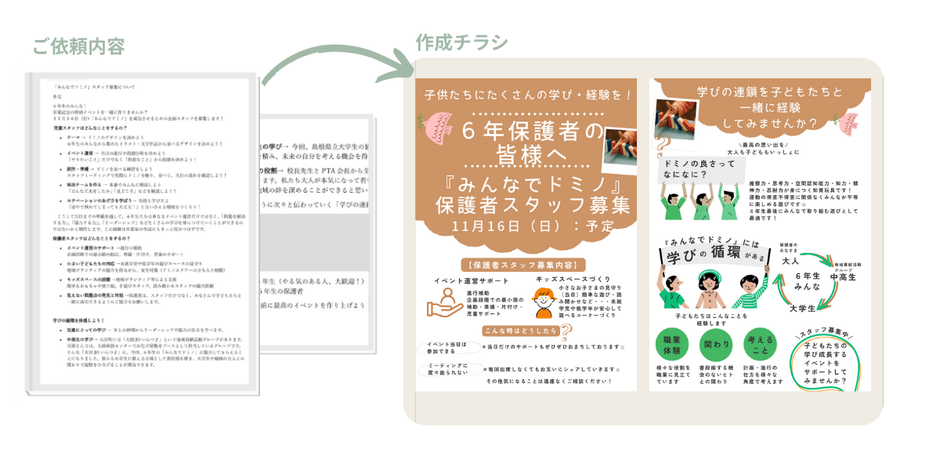 その言葉をひとつひとつ整理し、親しみやすく伝わるチラシに仕上げました。